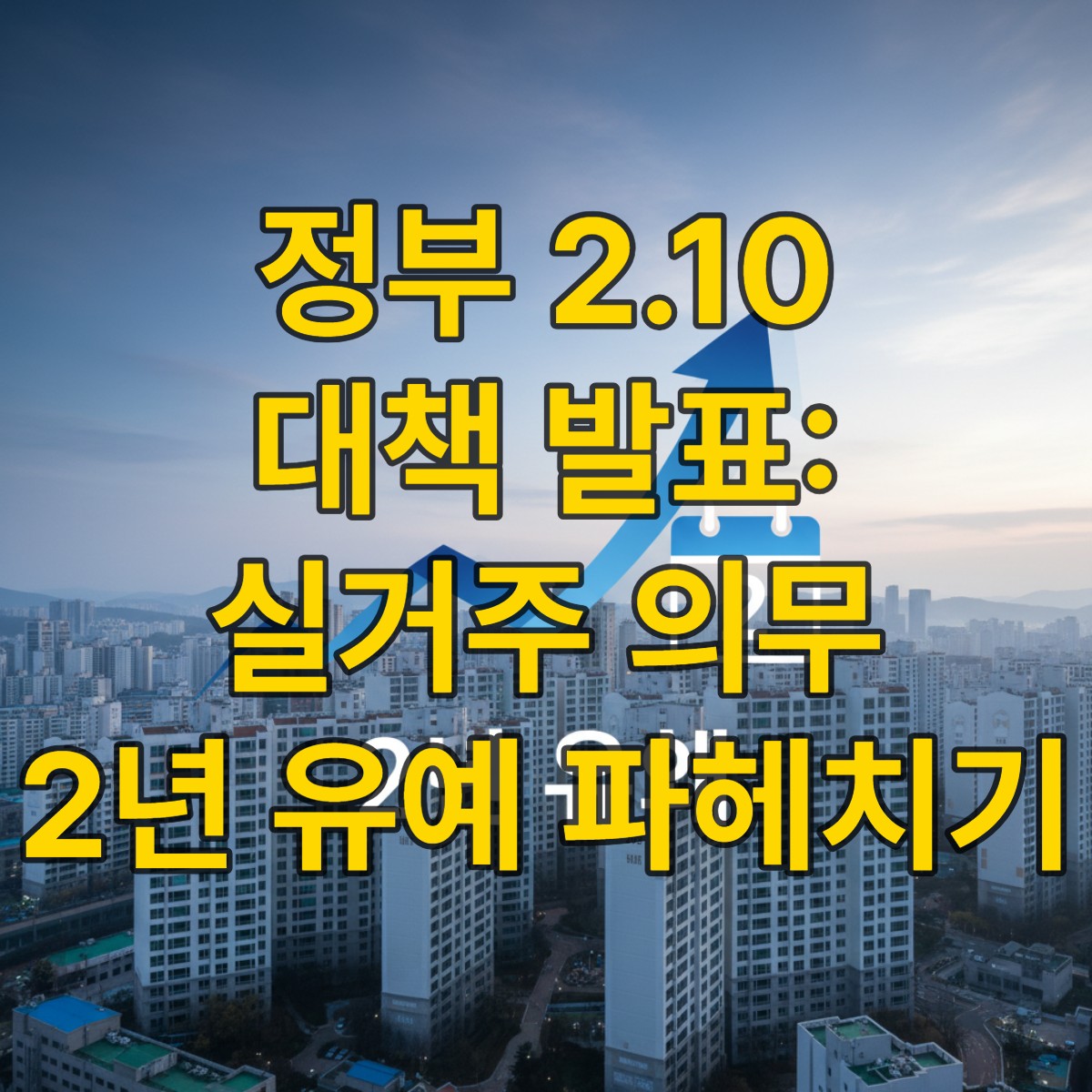 안녕하세요! 2026년 2월 11일, 정부가 발표한 2.10 부동산 대책의 핵심인 '실거주 의무 2년 유예' 조치에 대해 자세히 알아보겠습니다. 이번 정책이 어떤 배경에서 나왔고, 특히 어느 지역에 큰 영향을 미칠지, 그리고 투자자 및 실수요자 여러분은 어떻게 대응해야 할지 함께 고민해 보는 시간을 가질게요. 혼란스러웠던 시장에 어떤 변화의 바람이 불어올지 저와 함께 확인해 보세요! → 15억 아파트 주택 수별 양도세 시뮬레이션 보러 가기 ← "> → 15억 아파트 주택 수별 양도세 시뮬레이션 보러 가기 ← 잠깐! 세금 계산기 두드려 보셨나요? 이번 유예 조치를 활용해 집을 팔 때, 1주택자와 다주택자의 양도세 차이는 무려 3억 원에 달합니다. 내가 내야 할 정확한 세금 시뮬레이션 ..